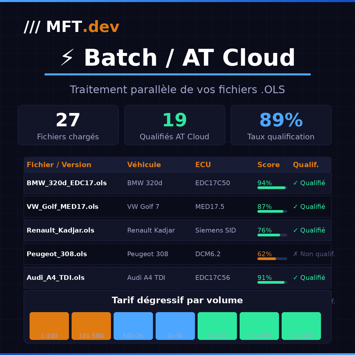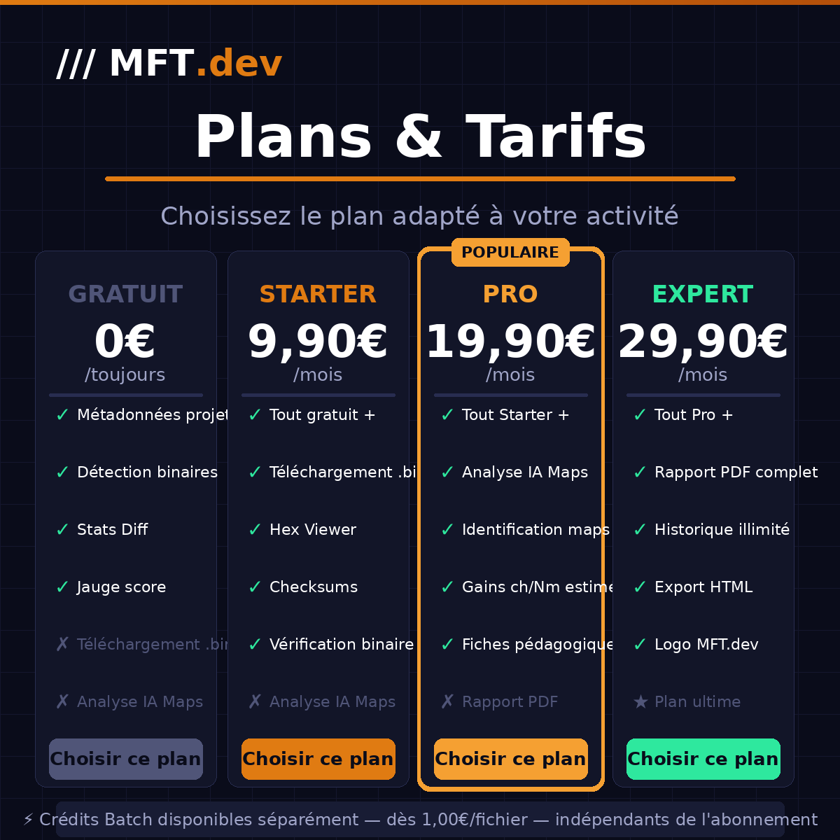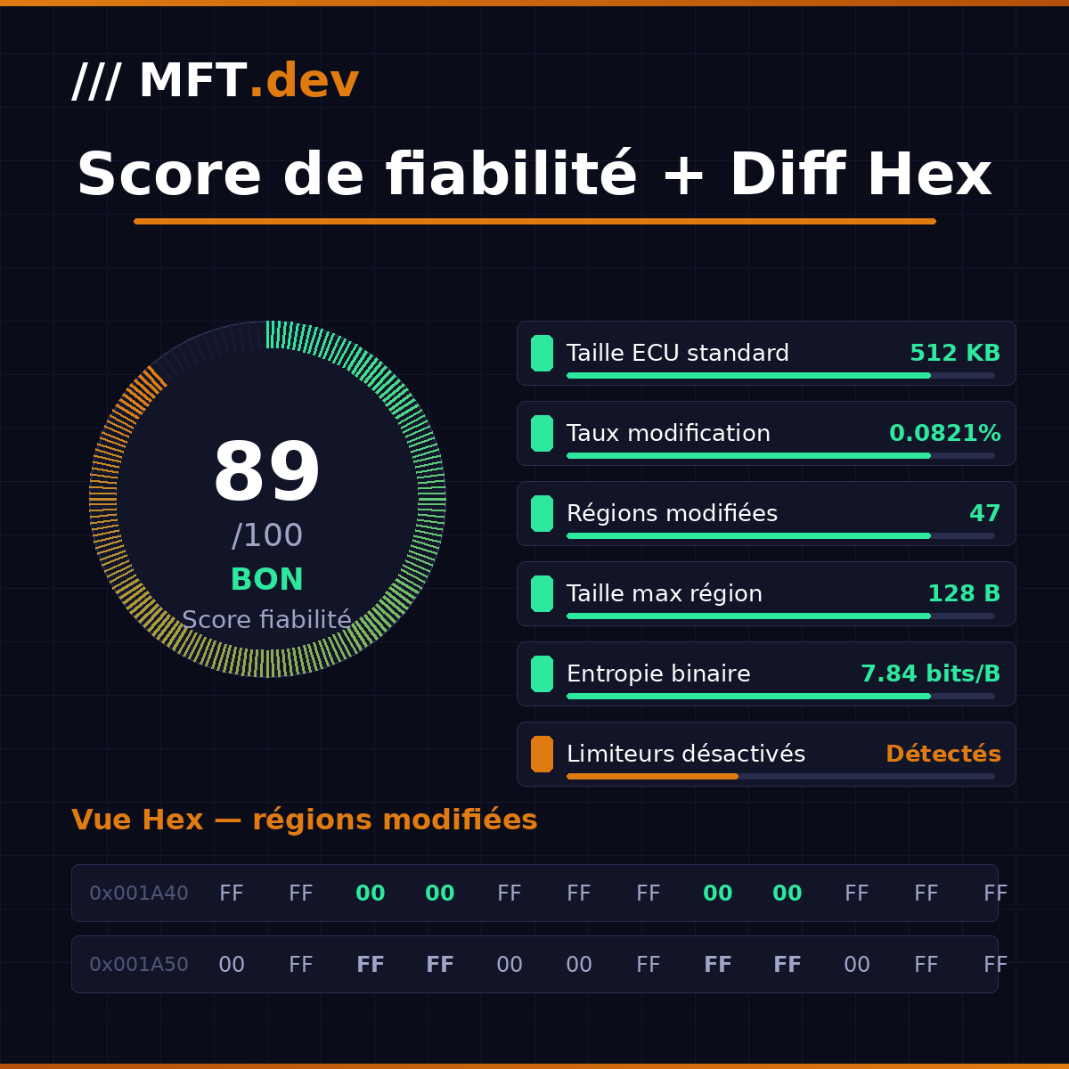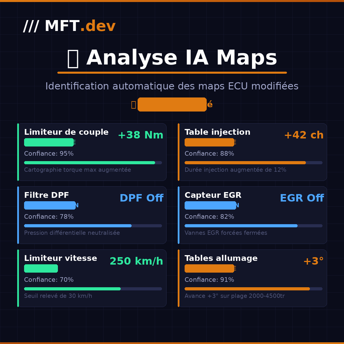 • MFT.dev service detection with estimated credits (Stage 1/2/3, E85, DPF, EGR, AdBlue, VMax, IMMO, DTC…)